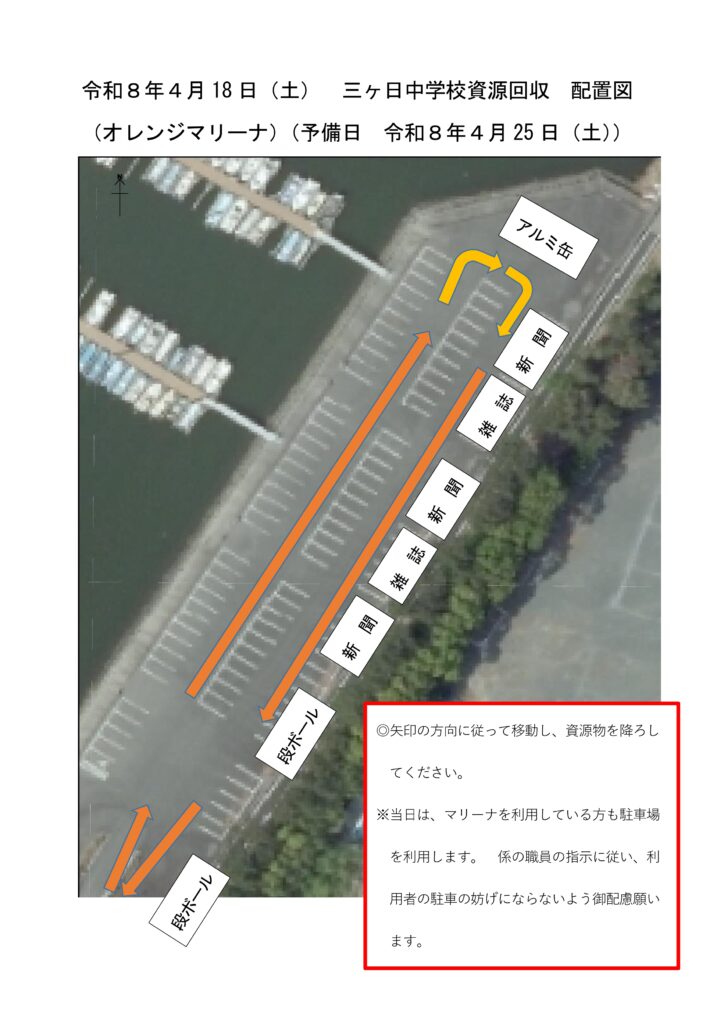 資源回収による三ケ日公共マリーナ駐車場の一部利用制限について(三ヶ日中学校)