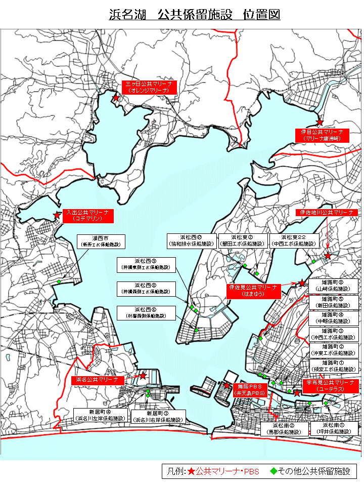 昭和60年以降、海洋性レクリエーション志向の高まりとともにプレジャーボート保有隻数が全国的に増加しました。船舶・船外機メーカーが周辺に立地する浜名湖でもプレジャーボートが普及しましたが、民間マリーナに所属する船艇を除いて、多くの船艇が湖岸や入り江などに不法係留され、河川管理上の流水阻害、沈廃船の発生、漁業者とのトラブル、係留場所周辺でのゴミの放置等、多くの問題が生じていました。